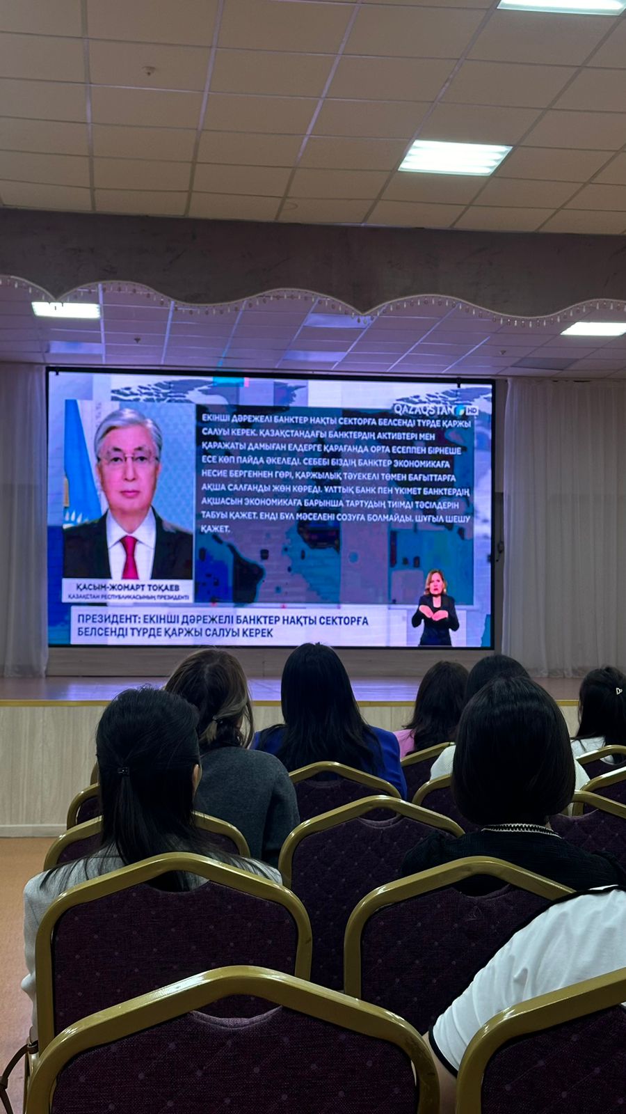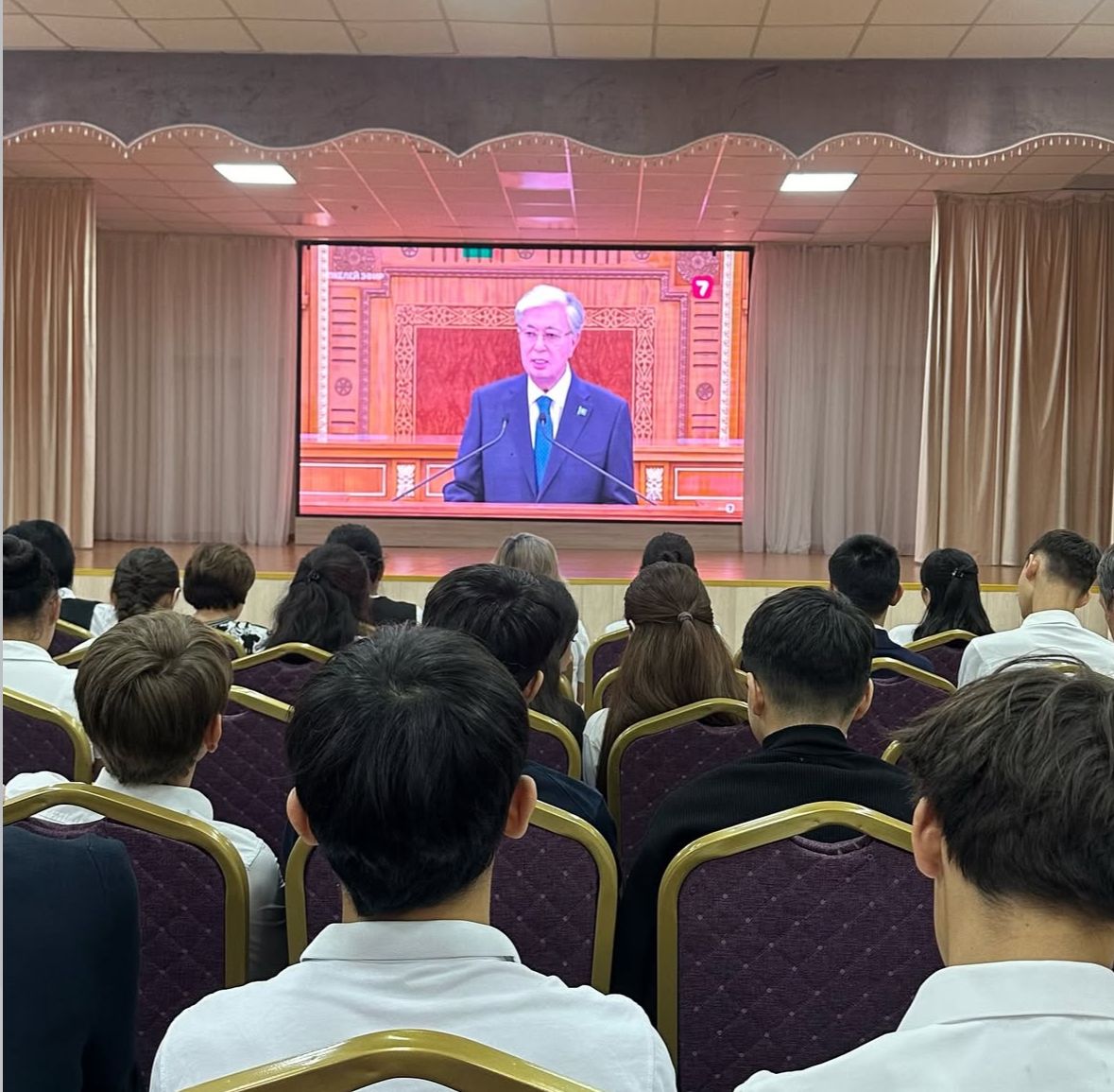 Бүгін №72 мектеп-лицейінің ұжымы мен оқушылары Мемлекет басшысы Қасым-Жомарт Кемелұлы Тоқаевтың Қазақстан халқына арнаған дәстүрлі Жолдауын тыңдады.