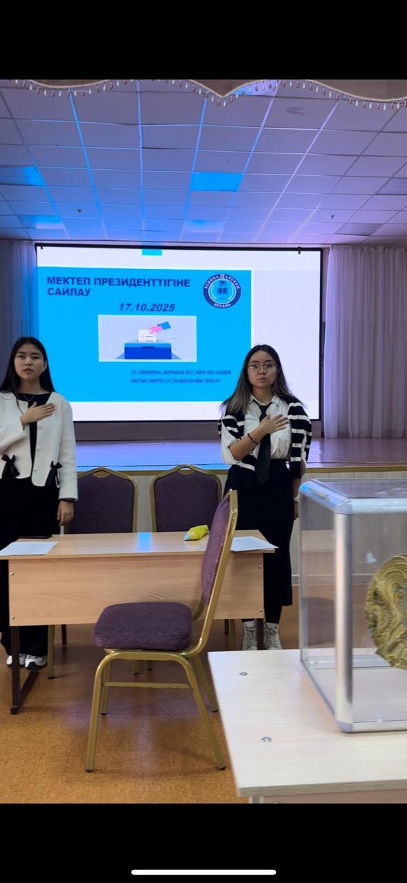 Дауыс беру ашық түрде, әділдік пен тең мүмкіндіктер қағидалары сақтала отырып өтті. Оқушылар өз таңдауларын жасады, нәтижесінде ең көп дауыс жинаған үміткер мектеп Президенті болып сайланды.