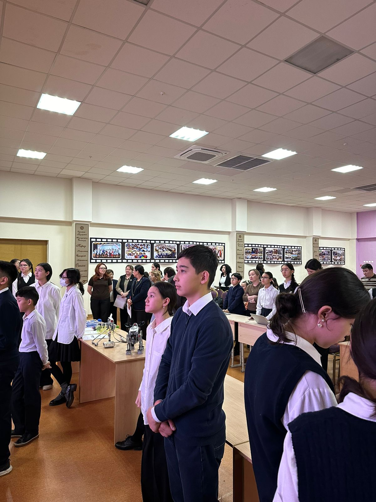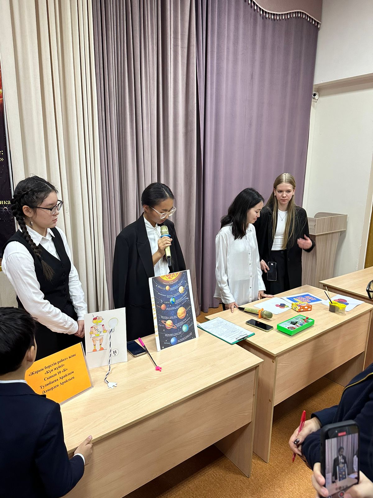 Робототехника саласында да оқушылар өз шеберлігін танытып, робот үлгілерін құрастырып, олардың жұмысын көрсетті.