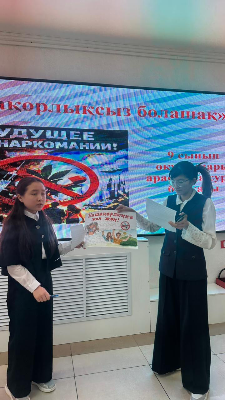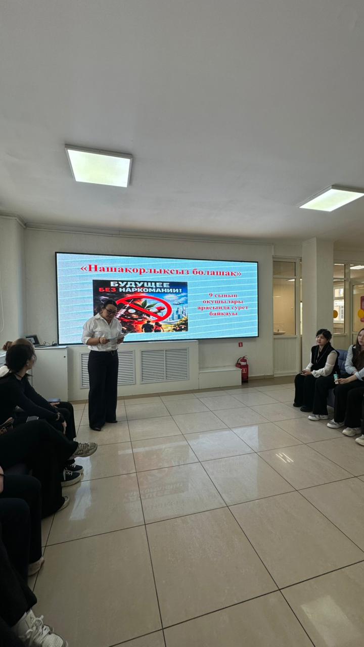17.02.2026ж 9 сынып оқушылары арасында «Нашақорлыққа жол жоқ» тақырыбында суреттер байқауы өткізілді. Әр сыныптан командалар өз ойлары мен көзқарастарын шығармашылық арқылы жеткізді. Оқушылар зиянды әдеттердің адам денсаулығына, болашағына тигізетін кері әсерін түсініп, салауатты өмір салтын таңдаудың маңыздылығын көрсетті. Іс-шара соңында оқушылардың шығармашылығы бағаланып