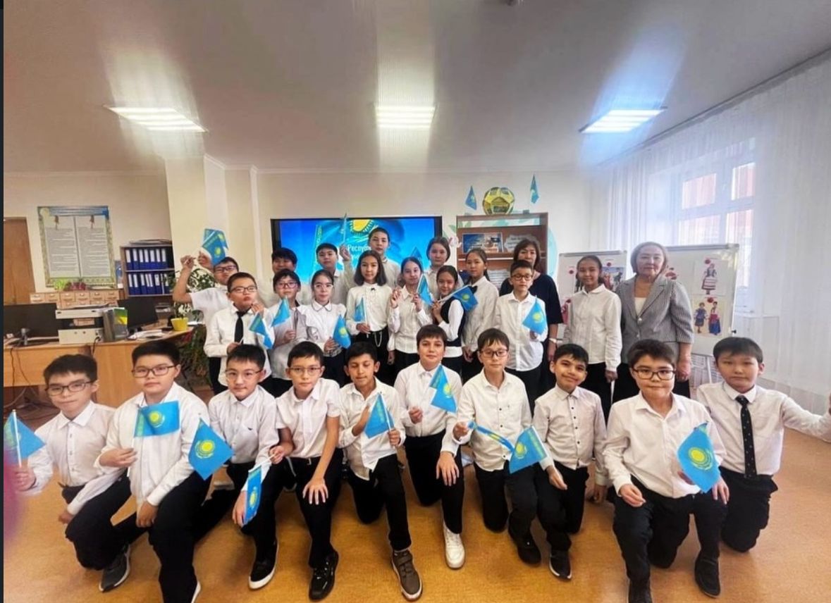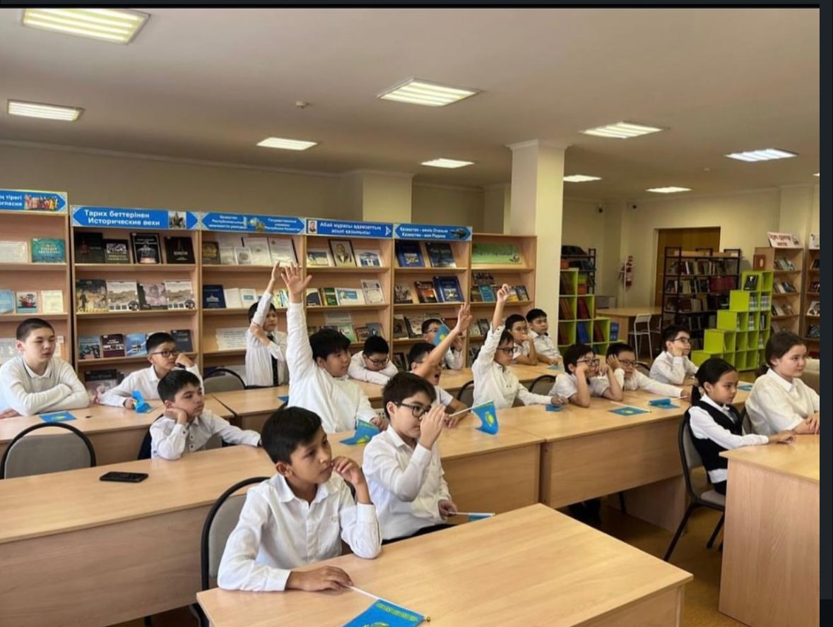 23.10.2025г. в библиотеке ШЛ № 72 с учащимися 5 Е класса провели классный час , посвященный Дню Республики. Мероприятие прошло в форме конкурса между двумя командами. Команды участвовали в таких конкурсах: «Назови предметы быта казахского народа» (из қоржина странствующего джигита доставали фото предметов, надо было на двух язаках дать название), «Кто это, угадай?» (по описанию угадать животное, обитающее в Казахстане), «Дастархан», «Полиглот», «Города» (прослушать песню «Здравствуй, столица!» и перечислить название городов из песни), «Байга» (игра со зрителями, из корзины доставали вопросы,приклееные к конфетам и отвечали на вопросы о Казахстане), «Собери пазлы», «Закончи пословицу» (ответ на трех языках,) «Национальный костюм» (фото костюмов соотнести с названием народностей на доске). Обе команды и зрители показали хорошую эрудицию по знанию истории, традиции, языков. Мероприятие завершили обрядом «Шашу».