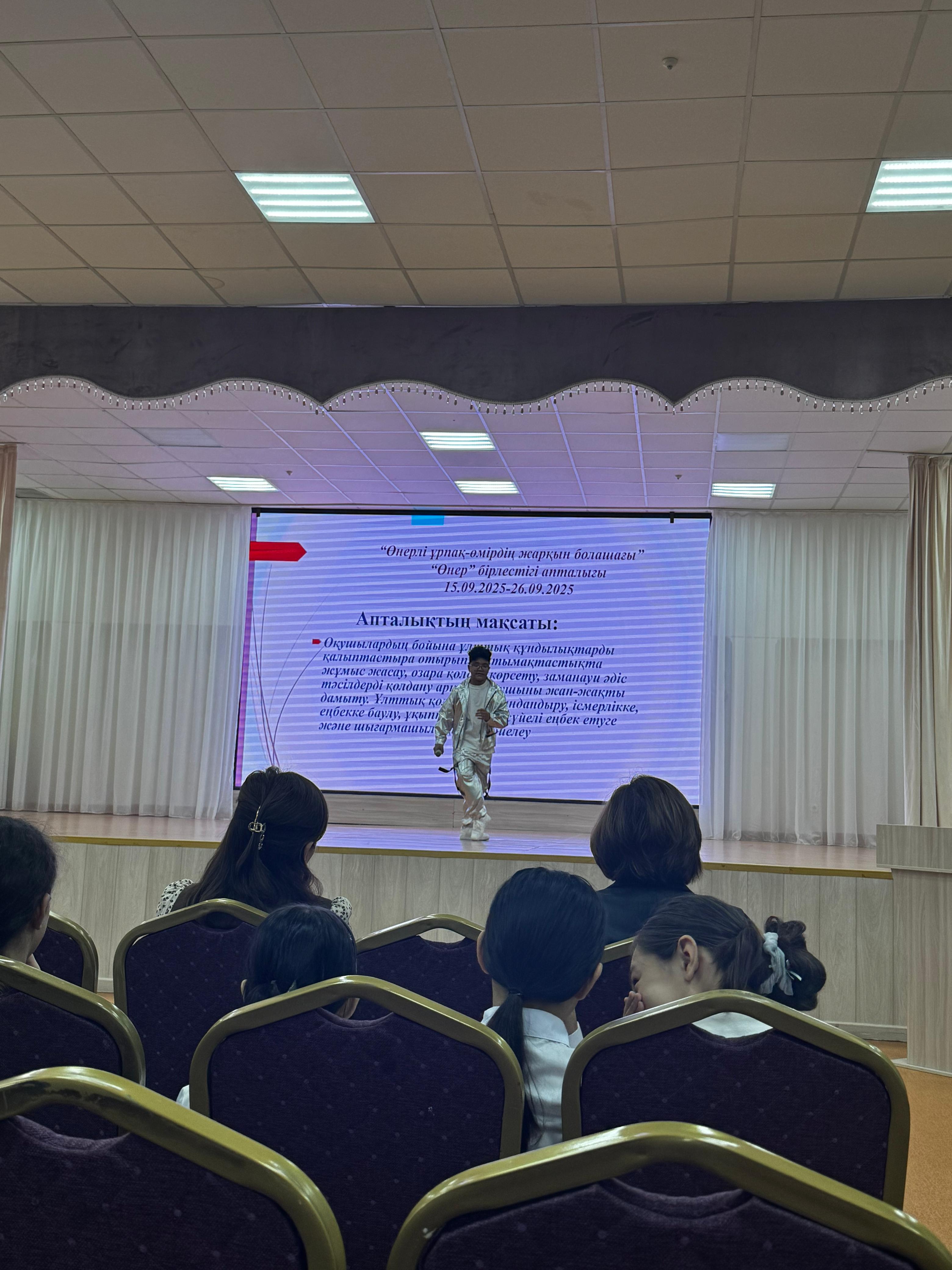 Мектебімізде қыркүйек айының 15.09.2025 мен 26.09.2025 аралығында Өнер бірлесігінің «Өнерлі ұрпақ-өмірдің жарқын болашағы» атты тақырыпта апталығымызды бастадық . Әдістемелік бірлестікте 10 ұстаз жұмыс жасайды. Мақсаты: Оқушылардың ойлау қабілетін және шығармашылық белсенділігін дамыту, алған білімдерін өмірде қолдану және өзара іс-тәжірибе алмасу. Дәстүрлі емес әдіс-тәсілдерді қолдана отырып, оқушылардың шығармашылық қабілеттерін арттыру. Оқушылардың бойындағы көркемдік-эстетикалық мәдениетін қалыптастыру,талантты және қабілетті оқушылардың бойындағы шығармашылық қасиеттерін дамыту. 15.09.2025 күні «Өнерлі ұрпақ-өмірдің жарқын болашағы» атты апталықтың ашылу салтанаты өткізілді. Ашылу салтанатында апталықтың жоспары құрылымы айтылып, оқушылар өлең, би өнерлерін көрсете білді. Апталықта ашық сабақтар мен қызықты сыныптан тыс іс-шаралар өткізіліп жатыр. Апталықтын алғашқы күні мектебіміздің мұғалімдеріне және оқушыларына қызықты ойындар өткізілді. “Көтеріңкі көңіл күй” атты мұғалімдер арасында ойын, “Еңбек –бәрін жеңбек” атты тақырыпта көрме өткізілді.
