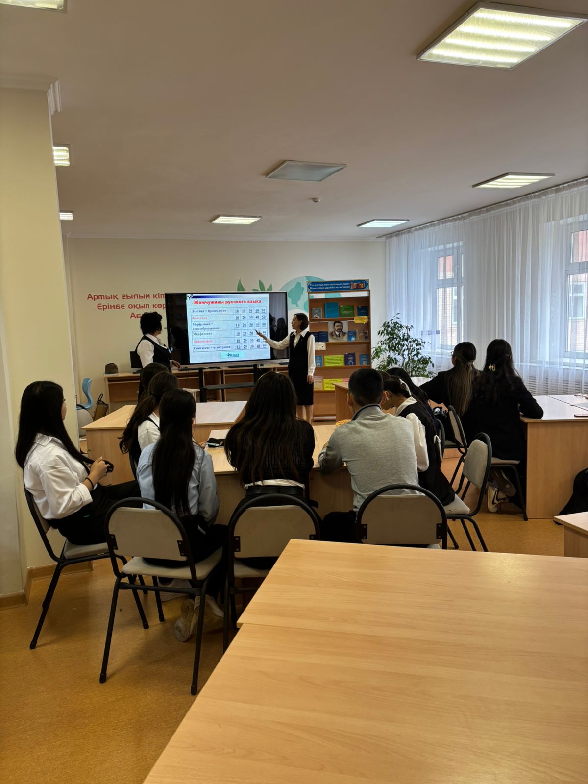 12.09.2025 ж. 9 «Ә» және 9 «Б» сыныптарында Бальдикова А.Д. мен Құрманғожина Г.Ж. Қазақстан халқы тілдері апталығына орай «Орыс тілінің інжу-маржаны» атты байқау өткізді.