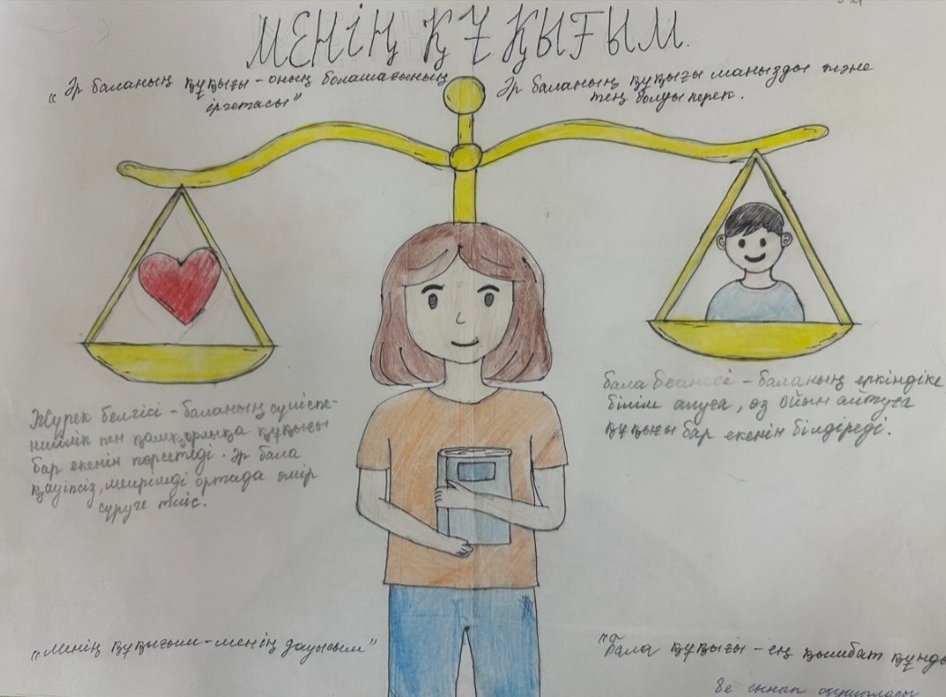 21.11.2025ж Балалар құқығын қорғау апталығы аясында “Менің құқықтарым” тақырыбында 8-сыныптар арасында шығармашылық сурет салу байқауы ұйымдастырылды! ✨