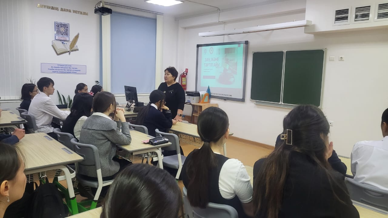 “Заң мен тәртіп” идеологиясын ілгерілету мақсатында №72 мектеп-лицейінде 19.01.2026ж 1-11 сынып оқушыларымен қоғамдық тәртіпті және тазалықты сақтауға бағытталған бірыңғай сынып сағаттары өткізіліп, бейнероликтер көрсетілді.